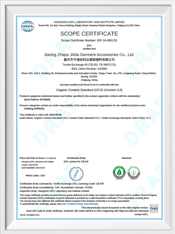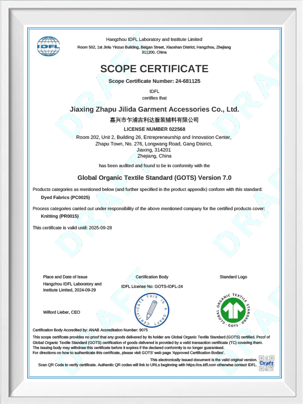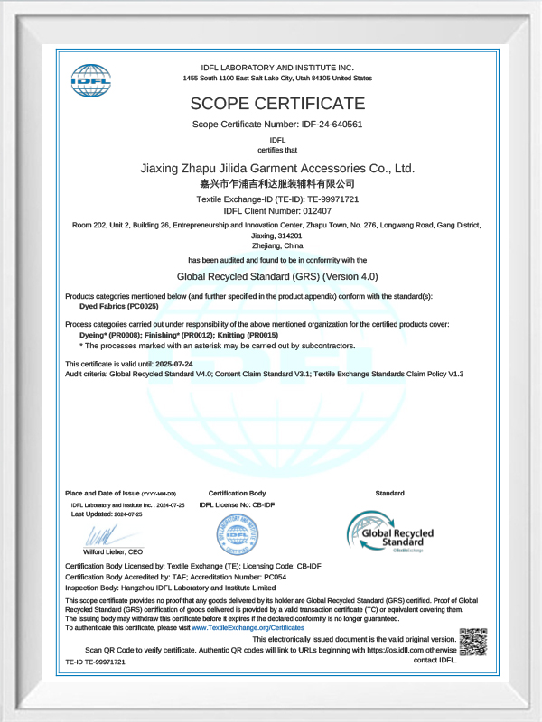 Jiaxing Zhapu Jilida odjeća za odjeću Co., Ltd., kao poduzeće specijalizirano za proizvodnju pribora za odjeću, Jiaxing Zhapu Jilida osvojio je široko priznanje na tržištu svojim izvrsnim zanatstvom i izvrsnom kvalitetom.